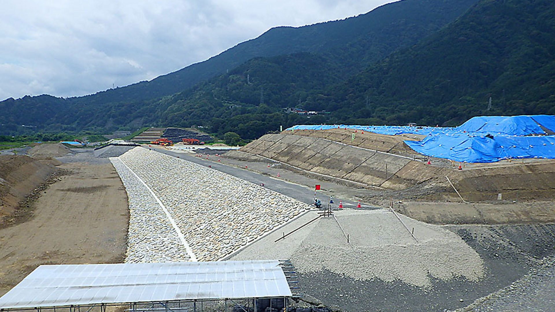 今回、丹澤建設工業がSolution Linkage Point Cloud(以下、SL-Point Cloud)を導入したのは、山梨県北杜市の山中で施工する「R2大武川工事用道路法面対策工事」だ。現場は大武川沿いの斜面で、法面を切土してアンカーを300本以上打ち、法枠工を行う。