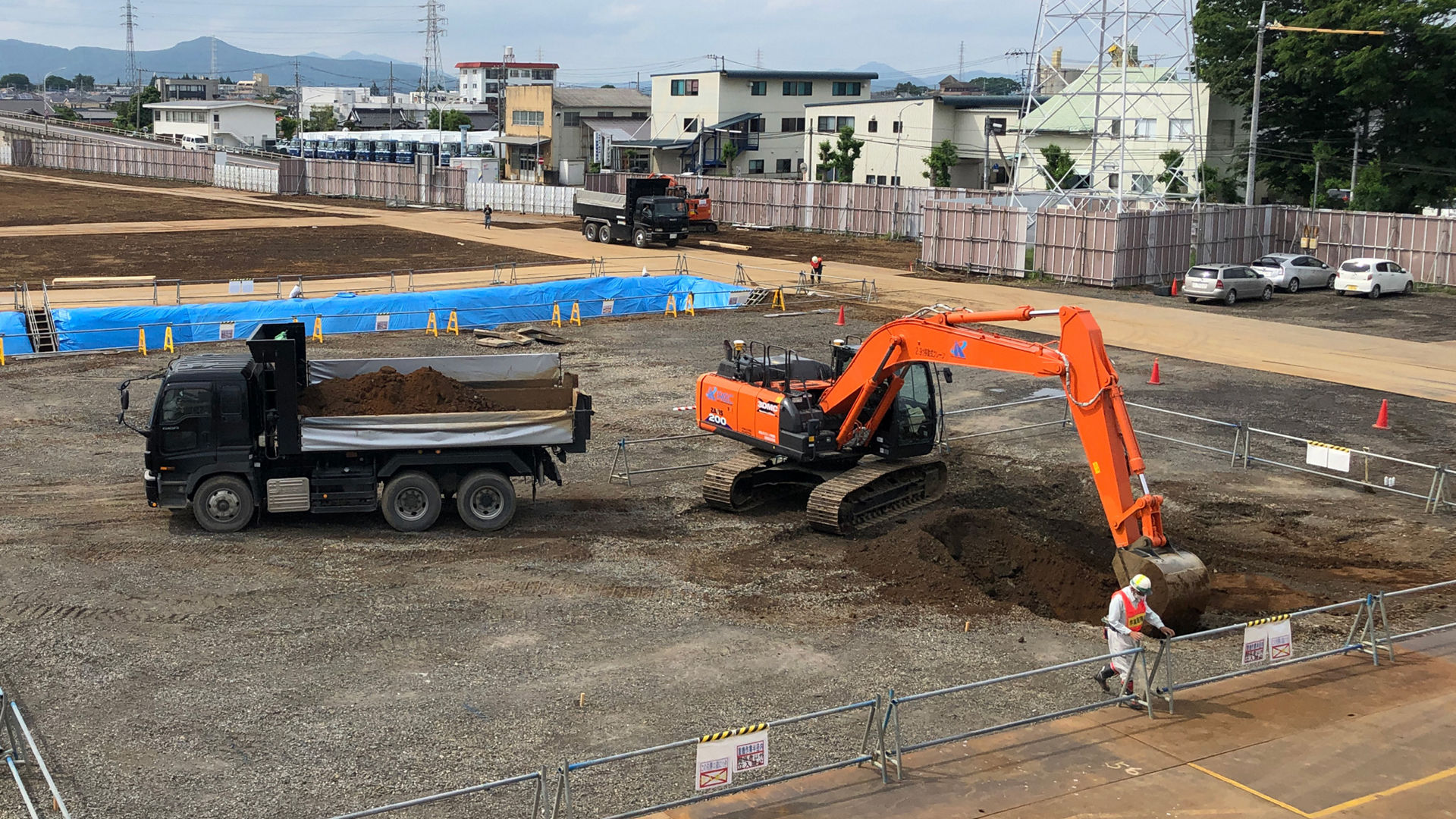 このうち土浦工場の「事務管理棟」建設の基礎工事では、日立建機のICT油圧ショベルZX200X-6の3次元マシンコントロール(3DMC)機能を活用した。施工を担当したのは東急建設で、現場を担った小川正男所長に話を聞いた。